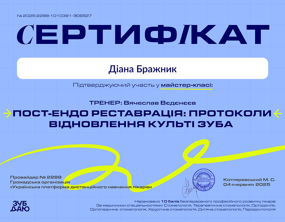 Лікар стоматолог-ортопед, спеціаліст з прямої та непрямої реставрації зубів.
