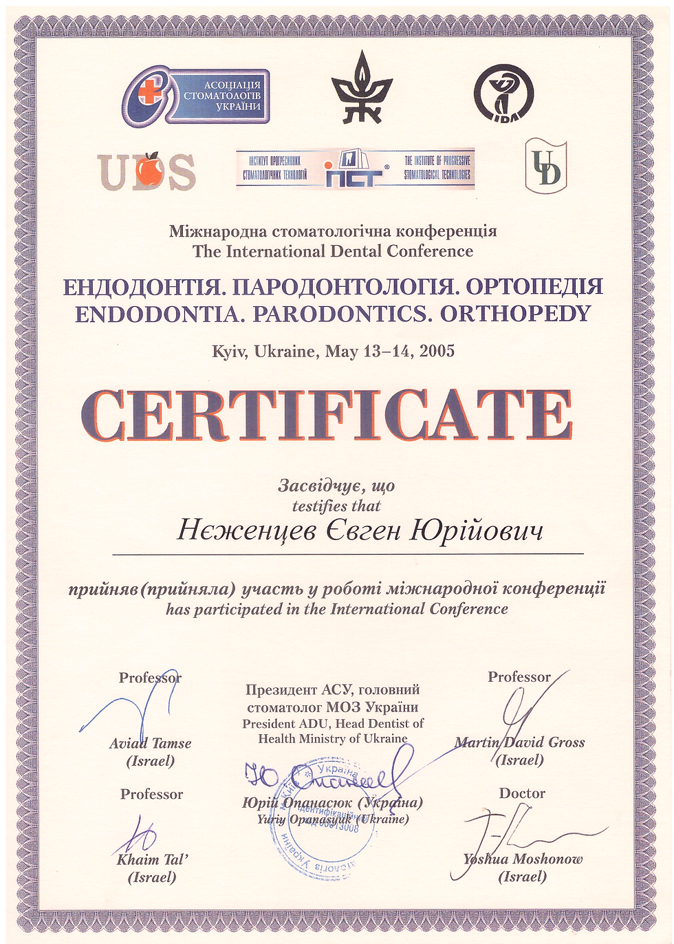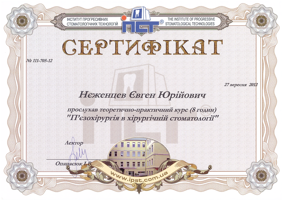 Президент Асоціації імплантологів України, лікар-стоматолог, щелепно-лицьовий хірург, ортопед, імплантолог.
